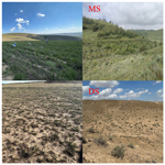 The study area (35°14′–39°23′ N, 104°17′–107°39′ E) is located in the Ningxia Hui Autonomous Region, China, with a total area of 66 400 km2, represents a transitional zone between the Loess Plateau and the Mongolian Plateau (Ji et al., 2023). Ningxia belongs to typical continental semi-humid semi-arid climate, and hosting a remarkable diversity of grassland ecosystems that cover 47 % of its land area – encompassing nearly all major grassland types found in northern China. In the southern Loess Plateau, meadow steppe (MS) and typical steppe (TS) dominate, with the TS concentrated near Guyuan City (e.g., Yunwu Mountain Grassland Nature Reserve). This area belonging to a semi-arid climate, with annual precipitation generally ranging from 300 to 400 mm, and is dominated by drought-resistant perennial tufted grasses, the soil is dominated by black clay. In contrast, MS is mainly distributed on the shady slopes and valleys of Liupan Mountains and other mountainous areas, where water conditions are better, the climate is more humid, and annual precipitation is generally around 400–600 mm. MS consists of perennial perennial and rhizomatous grasses in the middle of the arid zone, the soils are mainly mountain brown loam, mountain gray-brown soil and black clay. Desert steppe (DS) is distributed in the central and northern parts of Ningxia, representing a transitional zone between grassland and desert. It has an arid climate, with annual precipitation generally around 200–300 mm, and vegetation cover of 40 %–60 %, and is dominated by dry perennial grasses with participation of small dry shrubs. Steppe desert (SD) is distributed in the northern and northwestern parts of Ningxia, adjacent to the Tengger Desert and Mao Wusu Desert. The climate is extremely arid, annual precipitation is usually less than 200 mm, vegetation is sparse (< 30 %), and super-arid shrubs and small half-shrubs dominate (Zhang et al., 2025, 2023). The soil is predominantly light gray calcareous in DS and SD. This diversity offers a unique natural laboratory to investigate how varying ecosystems respond to climatic shifts.