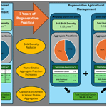 Regenerative soil management reduced bulk density, increased carbon stocks, and influenced aggregate stability with time. Soils were observed to become proportionally more enriched in stable aggregates and store more carbon with time. Stable aggregates provided physical protection (occlusion) to labile carbon stocks. When considered alongside recalcitrant carbon, these carbon stabilisation mechanisms may provide further opportunities to deliver robust long term carbon sequestration outcomes.