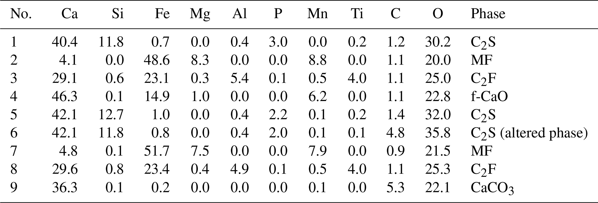 Although the dissolution of the C2S phase has been previously observed in experiments simulating paddy field conditions (Ito, 2022), precipitation of the CaCO3 phase on the slag surface has not been reported.