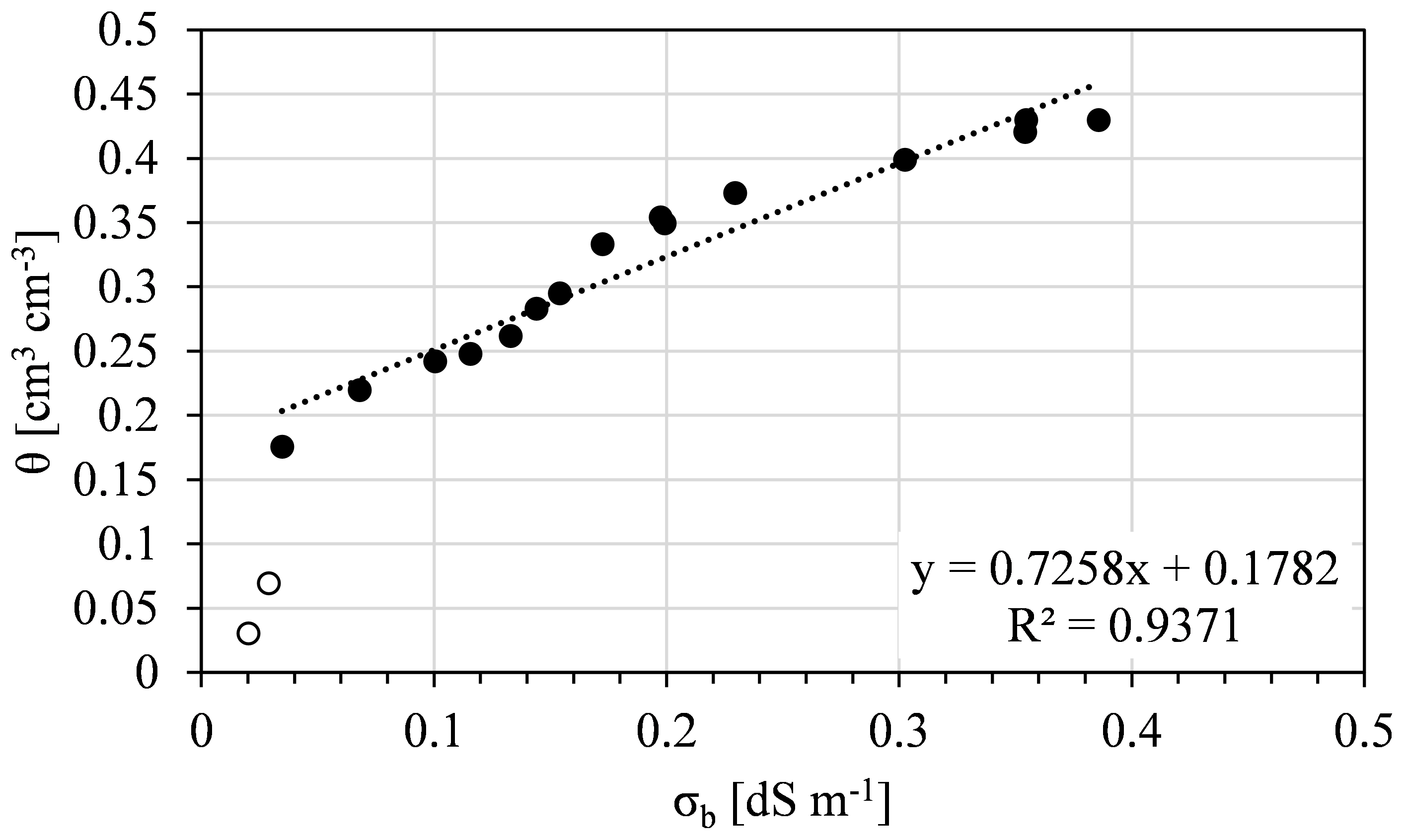 θ(σb) relationship: A linear calibration of θ–σb relationship was determined on soil from the non-saline plot.
