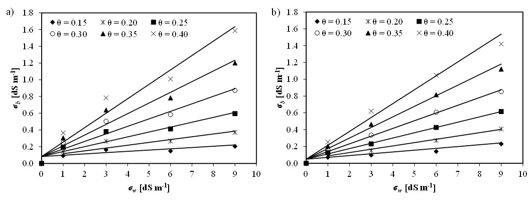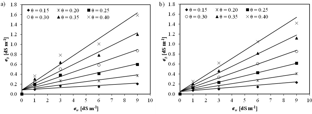 where a and b are parameters specific for each soil type estimated as a fitting parameter in Eq. (3). σs is calculated using a graphical approach (Rhoades et al., 1976).