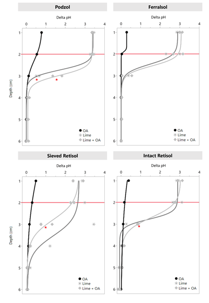 Organic-matter-mediated leaching of alkalinity in limed acid soils is affected by dissolved organic carbon adsorption and soil structure
